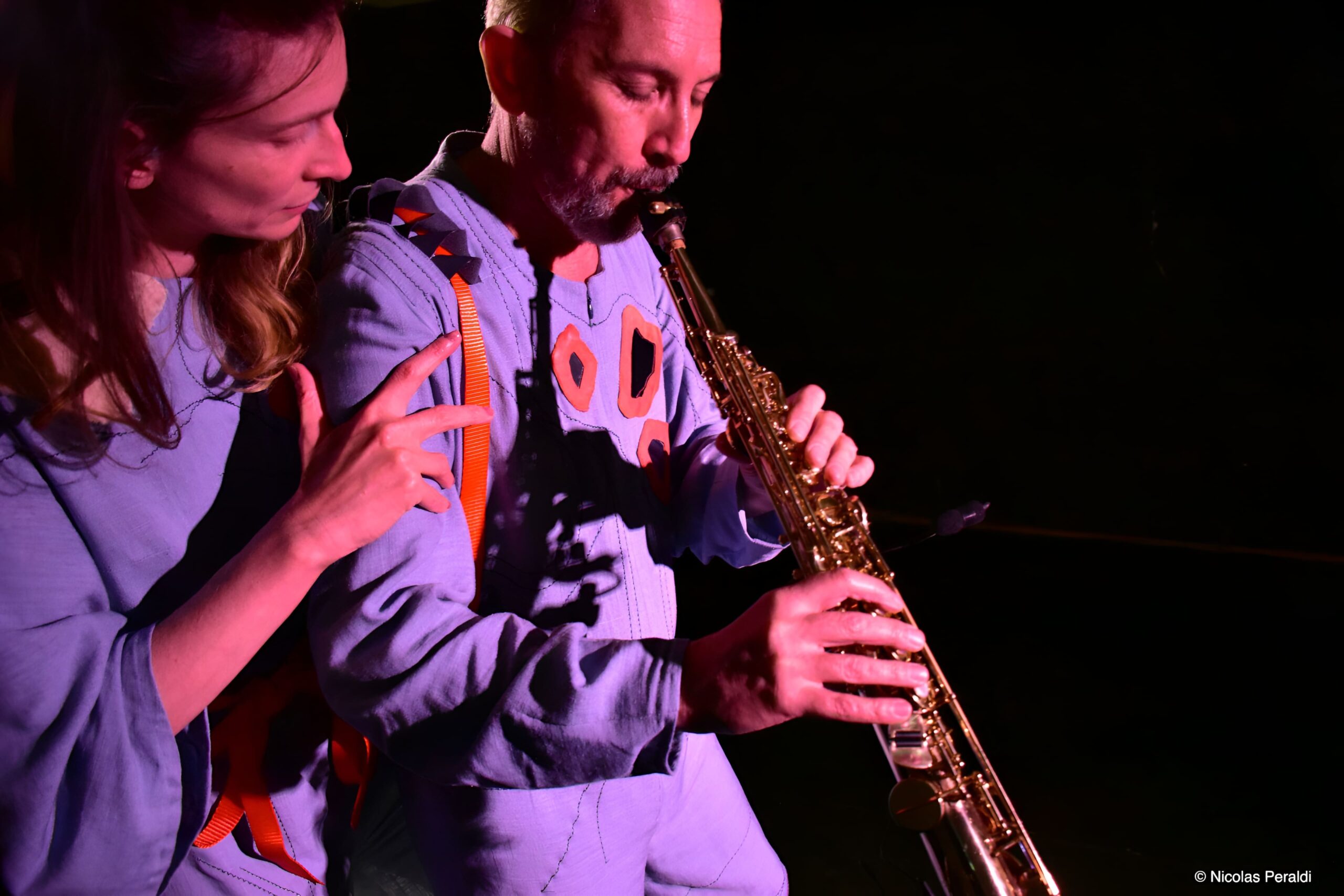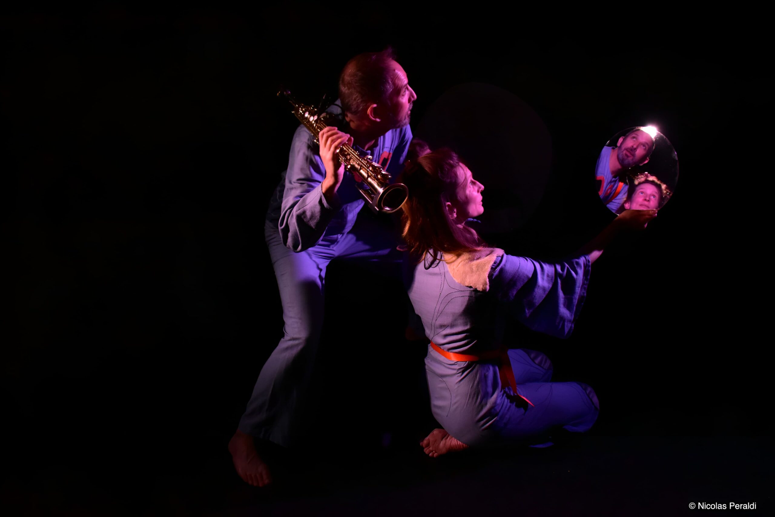 Nous explorons particulièrement les notions de corps-support et de corps-miroir : un corps qui accueille, qui reflète, qui accompagne sans imposer. Nous travaillons à faire émerger une présence physique et musicale fine, poreuse, réceptive — une “peau qui voit”, un corps qui perçoit l’autre et écoute avec tout son être.